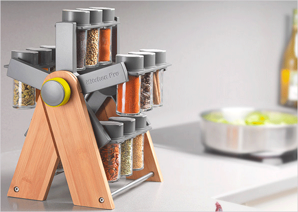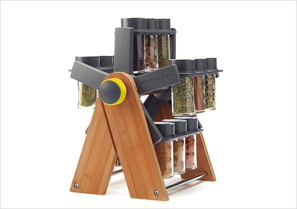 이 양념통은 미국 시애틀의 대관람차 페리스 힐에서 영감을 받아 디자인된 회전하는 양념통 랙입니다. 대나무 프레임으로 15개의 양념통을 거치할 수 있게 설계되었습니다.