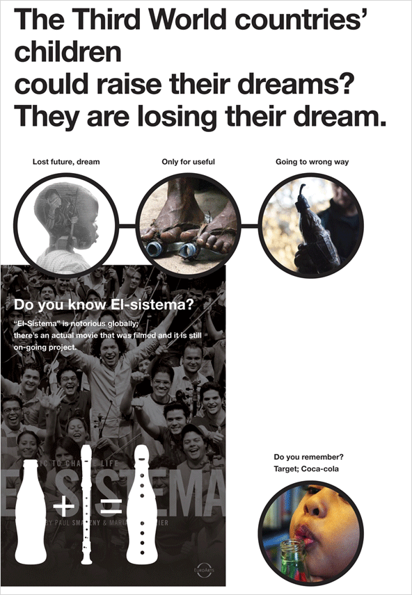 | 베네수엘라의 빈민층 아이들을 위한 음악 교육 프로그램을 통해 사회적 변화를 추구하기 위한 프로젝트인 '엘시스테마'에 활용할 수 있도록 한 컨셉트로 |