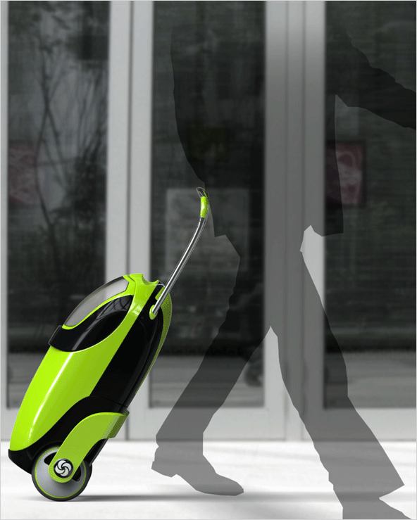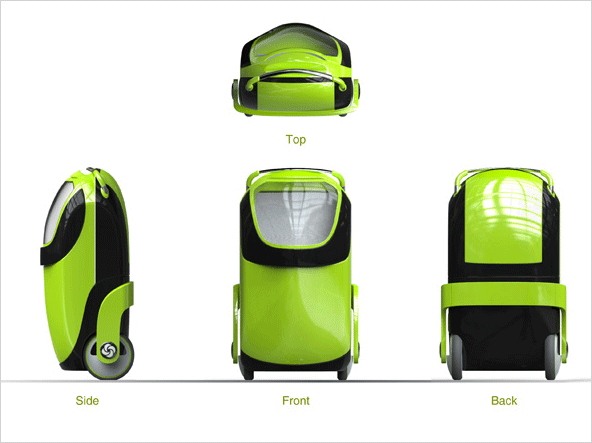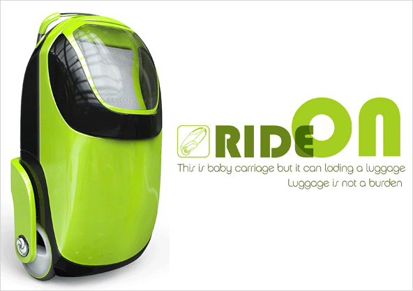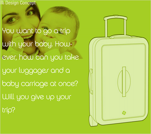 여행용 캐리어 가방에 유모차를 결합한 디자인입니다.