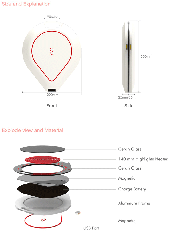 분리되는 두개의 스토브는 비접촉식 충전 시스템으로