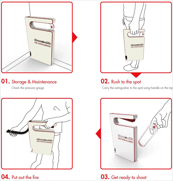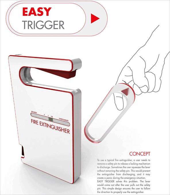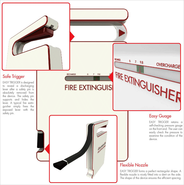 디자인 전공생 '심원보'씨와 '문우정' 씨가 디자인한 컨셉트 소화기 '이지 트리커'입니다.