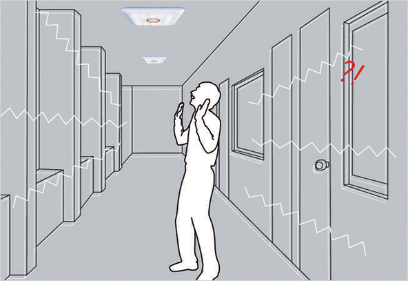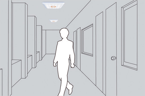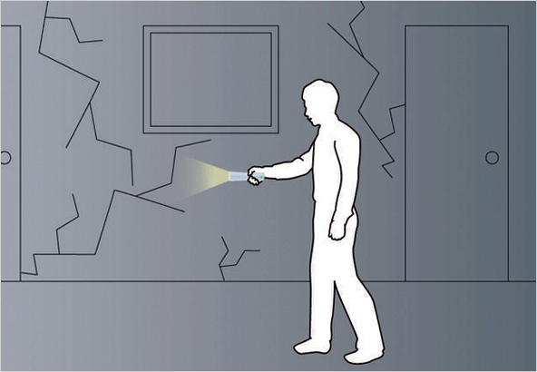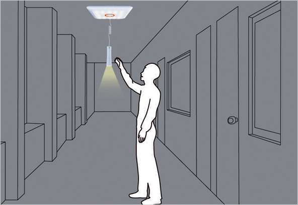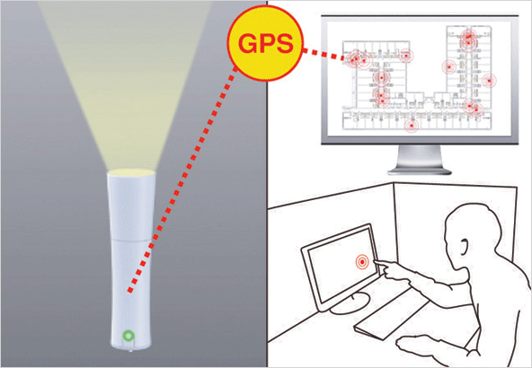 건물 내부에 갇혀 있는 사람의 위치를 파악할 수 있는 조명 시스템입니다.