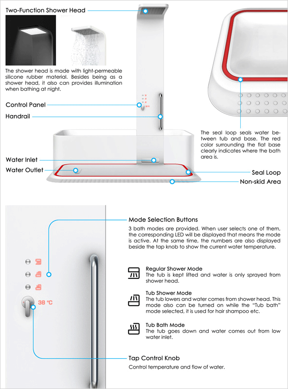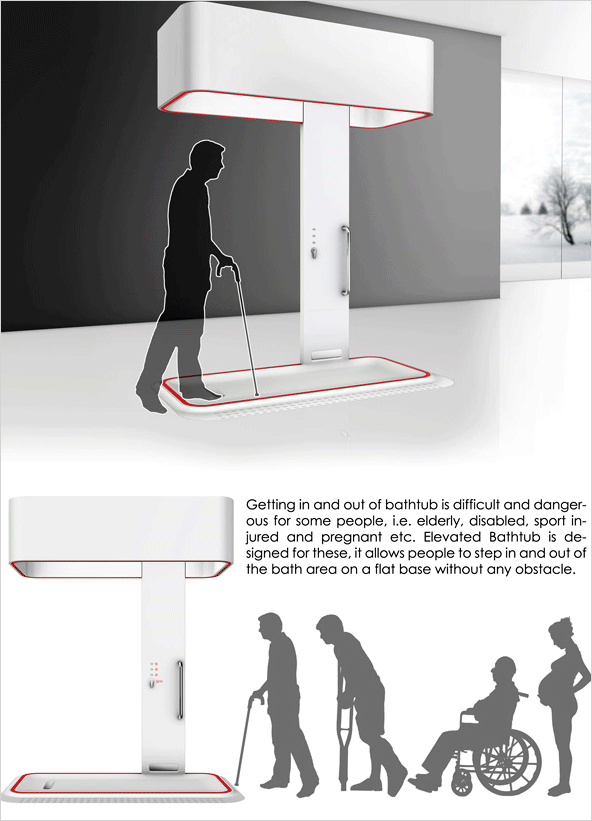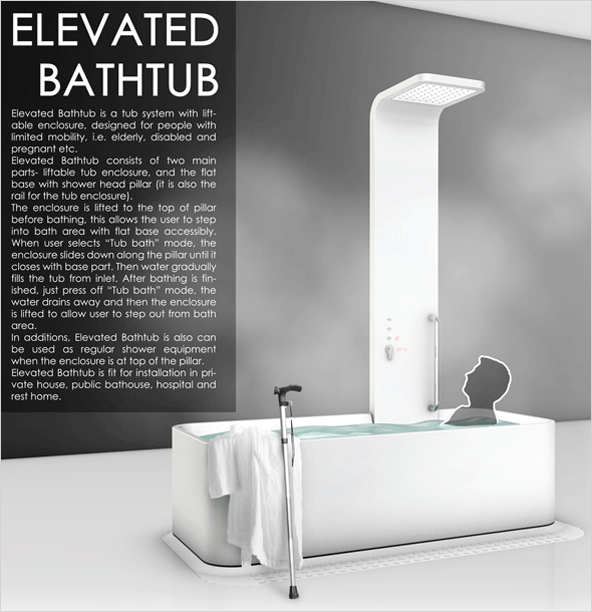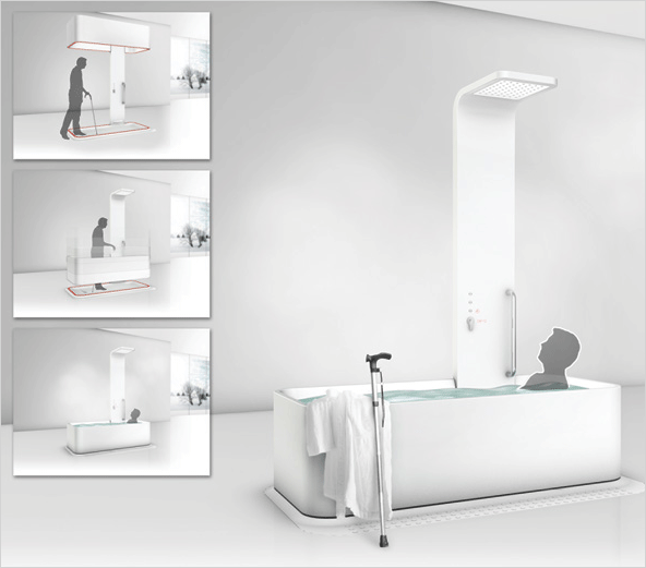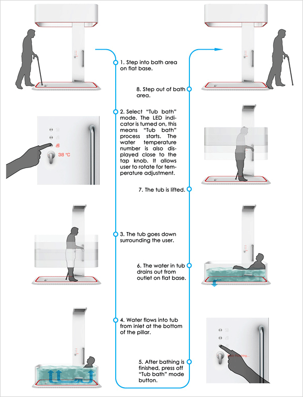 장애인 등과 같이 거동이 힘든 노약자나 임산부, 환자를 위해 편리하게 목욕을 즐길 수 있도록한 욕조 컨셉트입니다.