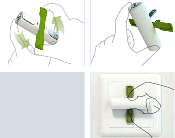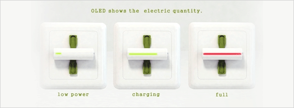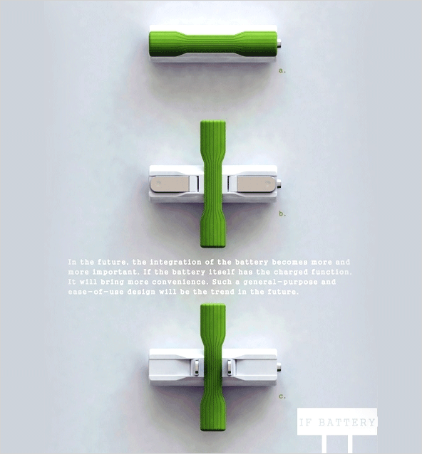 | 우리가 흔히 사용하는 일반적인 AA(또는 AAA형) 건전지에 플러그를 장착하여 바로 충전할 수 있는 컨셉트 아이디어 건전지입니다. |