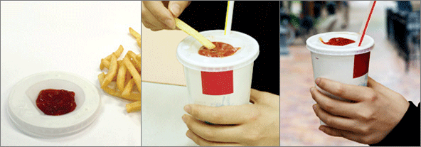 그냥 단순한 아이디어와 뚜껑의 작은 수정은 편리함과 고객에게 위생의 좋은 이미지까지 줄 수 있습니다.