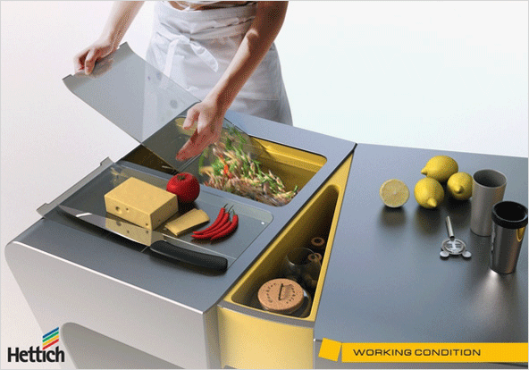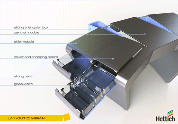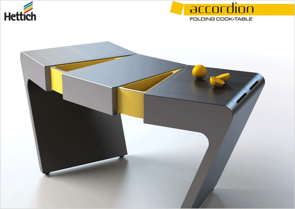 공간 활용에 효율적이면서 요리시에 편리성을 강조한 테이블입니다.