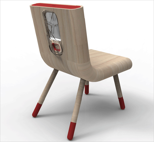 게다가 가장 특이한 점은 등받이 부분에 작은 톱이 내장되어