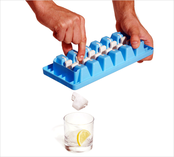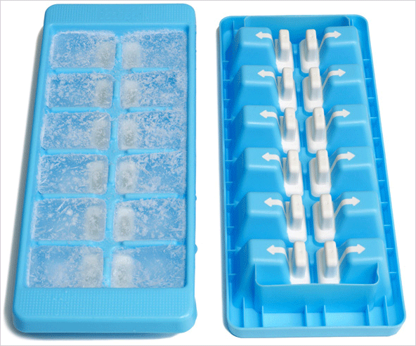 | 얼음 밑부분에 12개의 탭을 부착하여 탭을 옆으로 살작 밀어주면 얼음이 분리되는 아이디어 제품입니다. 컵이나 용기에 손을 대지 않고 원하는 갯수만큼 얼음을 편리하게 넣을 수 있습니다. |