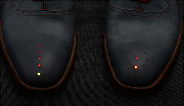 왼쪽 신발의 원으로 표시된 LED는 가야할 방향을 표시하고,