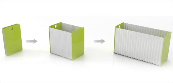 | 휴지통 'X˚ 쓰레기통' 이 쓰레기통은 아코디언과 같은 모양의 자바라식으로 설계되어 있어 쓰레기의 양에 따라 공간이 확장될 수 있으며, |