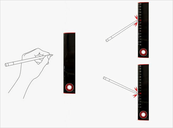 이런 과정을 없애고 간편하게 아무 지점을 선택해서 원하는 치수만큼의 선을 그을 수 있도록 한 컨셉트로 연필이나 볼펜의 압력을 감지하여 측정합니다.