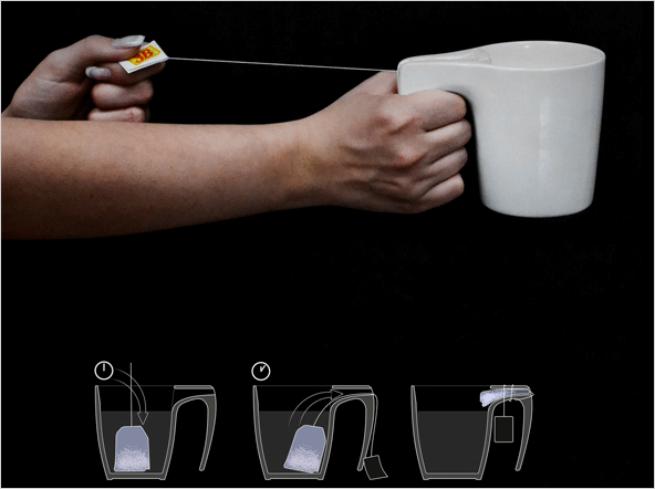 | 새총의 고무줄을 당기듯 티백의 줄을 당겨주면 차의 진한 맛과 향기를 음미할 수 있을거 같습니다. 그러나 컵을 세척할때 작은 홈을 닦을때 좀 힘들지 않을까 싶습니다. |