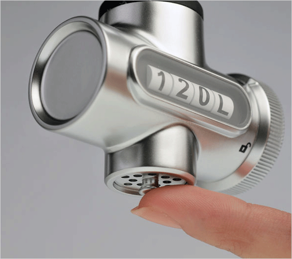 수도꼭지에 장착하여 자신이 사용할 만큼의 물의 양을 다이얼을 돌려 설정한 다음 설정된 물의 양에 도달했을때 자동적으로 멈추게되는 원리로