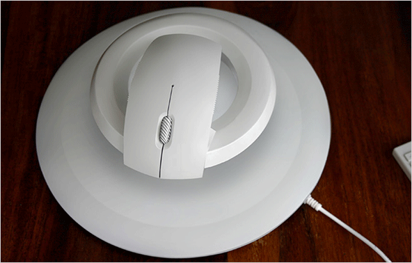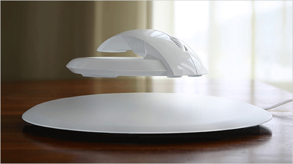 | 컴퓨터 마우스 '뱃'입니다. 이 마우스는 마우스 패드와 함께 구성되어 서로 자성에 의해 마우스가 공중 부양하고 있는 특이한 컨셉트의 마우스입니다. |