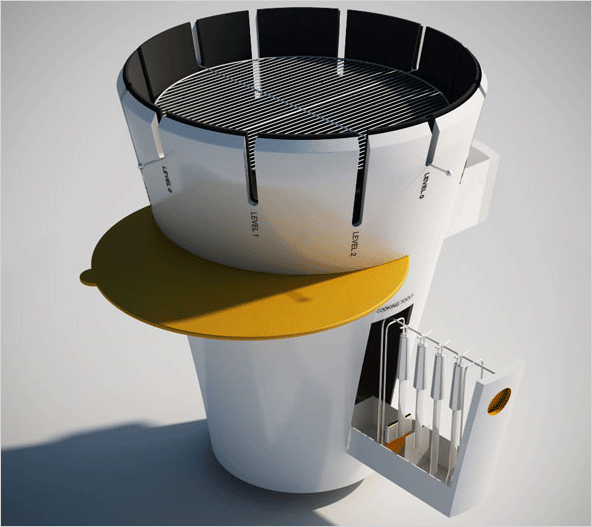 꼬치나 석쇠를 그 홈에 끼워 바베큐(꼬치구이) 조리시