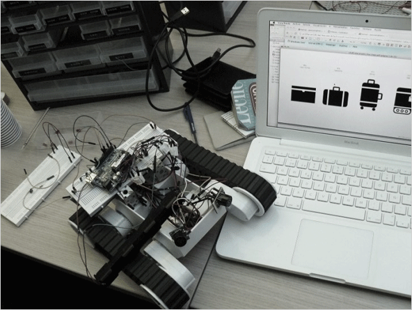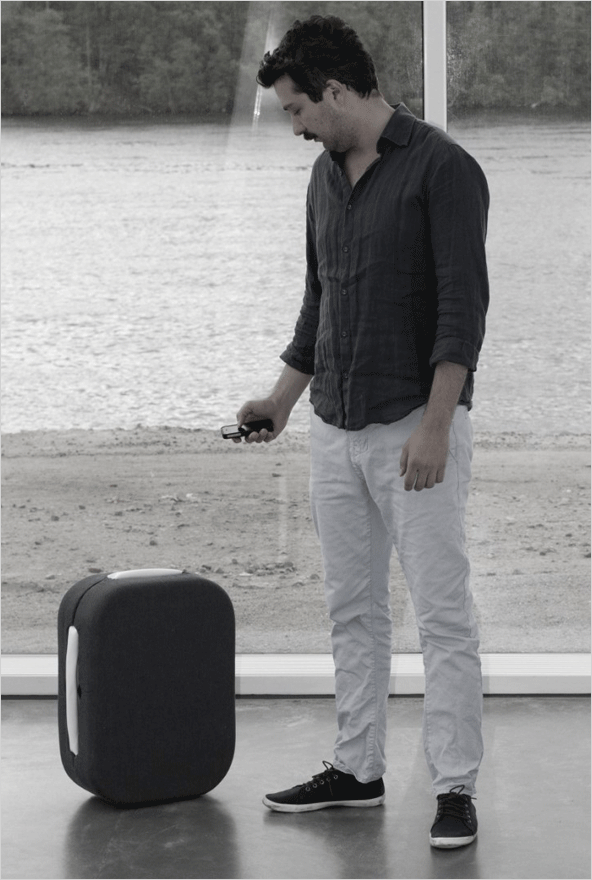 사람의 뒤를 졸졸 따라다니는 슈트케이스(여행용 캐리어)로 슈트케이스 내부에는 신호를 추적하는 3개의 수신기가 내장되어 있어
