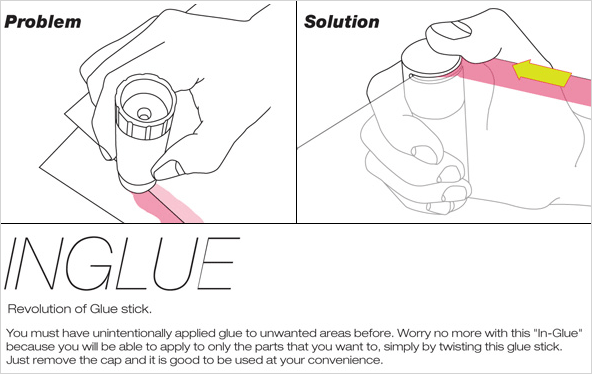 인글루는 기존의 딱풀을 사용했을시 불편했던 부분을 해결책으로 제시해 새롭게 디자인된 딱풀입니다.
