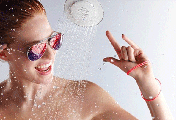 음악을 들으면서 샤워를 할 수 있도록 설계한 샤워헤드로