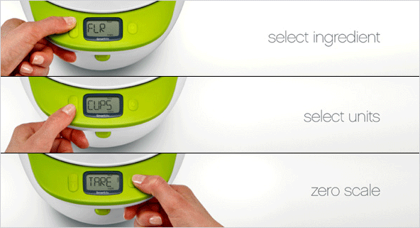 밀가루와 같은 재료를 계량 용기에 담아 또 다시 저울에 올려 정확한 양을 달고 또 그재료를 반죽할 용기에 담아야하는 번거로움을 최소화 했습니다.